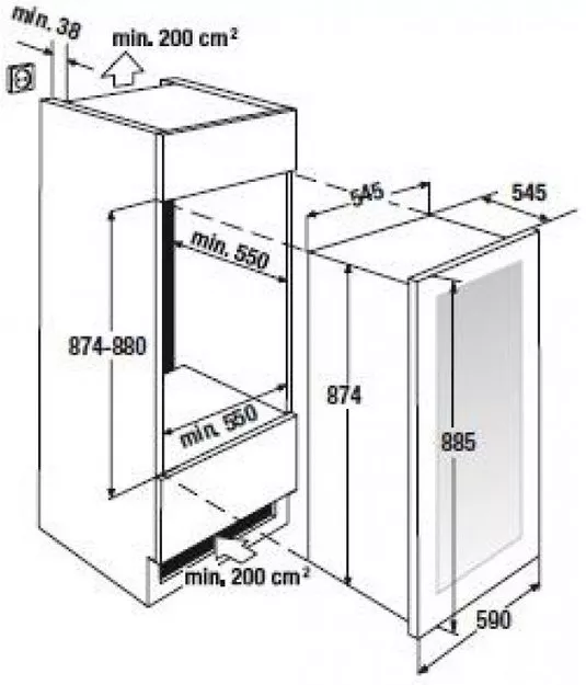 • Тип: встраиваемый винный шкаф